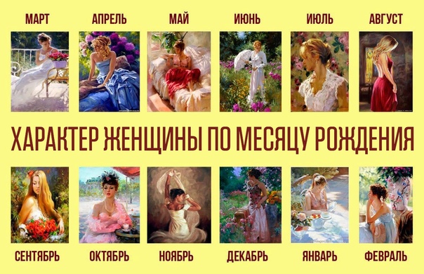 ХАРАКТЕР ЖЕНЩИНЫ ПО МЕСЯЦУ РОЖДЕНИЯ | ВСЁ В ТОЧКУ!Забудьте про гороскопы — характер женщины также можно определить по дате рождения! Рекомендуем ПОДПИСАТЬСЯ Честно признаюсь, я не особо верю в гороскопы… Ради развлечения, чтобы отвлечься тихонько открыла на работе — прочитала и была поражена! Действительно совпадает! При чем совпало у всех сотрудниц и про нашу заведующую чистейшая правда! Показать полностью…Существуют разные виды гороскопов с привязкой к декадам, лунным фазам, знакам Зодиака, месяцам и числам, соответствующим дате рождения. Предлагаем определить характер женщины по месяцу рождения и дате Январь Это месяц рождения самых терпеливых и выдержанных женщин. В то же время такие женщины могут иметь мужской, стоический характер. Они не будут жаловаться или делиться откровениями, предпочитая гордо и самостоятельно справляться с проблемами. Январские женщины талантливы в кулинарном искусстве, но не любят заниматься уборкой. Февраль Это месяц рождения настойчивых и упрямых женщин со сложным характером. У них бывают нервные срывы, но в то же время присутствует достаточно высокий самоконтроль. Они никогда не боятся трудностей и быстро принимают решения, которые не всегда оказываются правильными. Обидчивы и бывают мстительными. Хорошо манипулируют людьми, и потому у них удается карьера. Очень любят детей. Март Месяц рождения самых чувствительных женщин. Они очень впечатлительны и ранимы, поэтому часто проявляют упрямство, которое в итоге оборачивается им во вред. Очень мнительны и считают себя несчастными. Этим женщинам действительно трудно добиться успеха из-за их застенчивости. Природа одарила этих женщин хрупкостью и обаятельностью, поэтому они так притягивают мужчин-защитников. Апрель Характер женщин по этому месяцу рождения отличается такими чертами как смелость, настойчивость и целеустремленность. Идеальным дополнением является здравомыслие и практичность. Эти люди всегда знают, чего хотят, поэтому медленно, но верно достигают желаемого, но совершенно не выносят нестабильности. Эмоции и чувства всегда позади разума. Май Властные и требовательные, бескомпромиссные и решительные женщины. Обид не прощают, поэтому могут легко развестись с мужем, хотя потом пожалеют. Это упрямые женщины с лидирующими качествами, поэтому им легче занять кабинет начальника, чем найти мужа. Во главу угла ставят материальный достаток. Июнь Главная черта женщин, рожденных в первый летний месяц – осторожность. Часто такие люди очень ранимы и мнительны, но при этом настолько добрые, что никогда не станут мстить. Не любят конфликтов, имеют хорошую интуицию, которая, кстати, помогает этих конфликтов избегать. Поступки совершают под воздействием настроения. Июль В этом месяце рождаются самые скромные и застенчивые женщины. Они часто переживают и постоянно занимаются самоанализом. Всю их жизнь определяет настроение. Скромные и романтичные, умеют очень глубоко чувствовать и переживать, но никогда не показывают это. Дом и семья для женщин июля – главное в жизни. Август Самые гордые и независимые женщины рождаются в этом месяце. Они также добры и благородны, но властолюбивы и по натуре лидеры. Любят быть в центре внимания, но независимы. Имеют большую харизму, и, несмотря на то, что постоянно притягивают к себе мужчин, очень ценят се